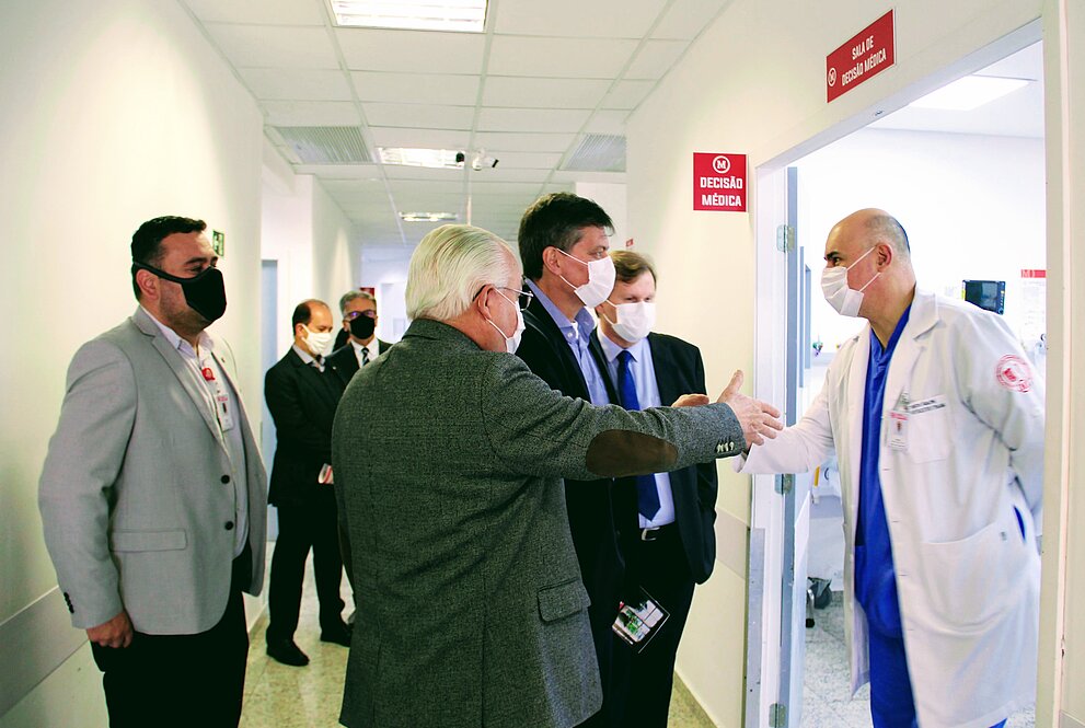 Após uma reunião entre os diretores do IPM e HUEM, eles percorreram diferentes alas do Hospital para conhecer as instalações e equipamentos utilizados nos mais variados atendimentos de saúde realizados no Hospital Evangélico Mackenzie.