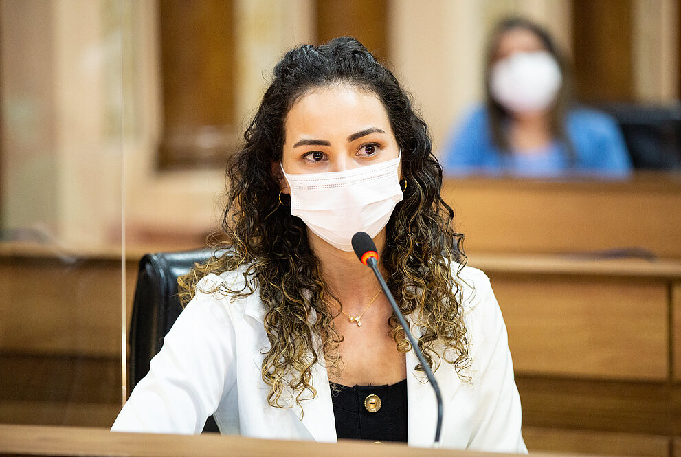 A fisioterapeuta Barbara Beatriz Joei Mioto, 28 anos, foi homenageada na Câmara Municipal de Curitiba (PR) nesta quinta-feira, 09 de dezembro. Ela recebeu os Votos de Congratulações e Aplausos em virtude de sua atuação na linha de frente do combate à pandemia de Covid-19.