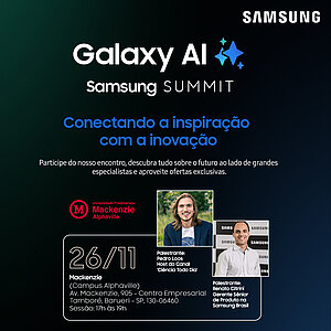 A Universidade Presbiteriana Mackenzie (UPM), campus Alphaville, realizará, para os alunos, na próxima terça-feira, 26 de novembro, o Galaxy AI Samsung SUMMIT, evento sobre Tecnologia, Inovação e Inteligência Artificial (IA).