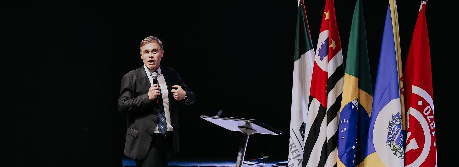 O reverendo José Roberto Rodrigues Coelho, capelão da Educação Básica do Colégio Presbiteriano Mackenzie (CPM), representando o chanceler do Mackenzie, Robinson Grangeiro Monteiro, realizou o momento devocional da noite.