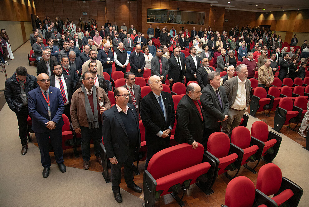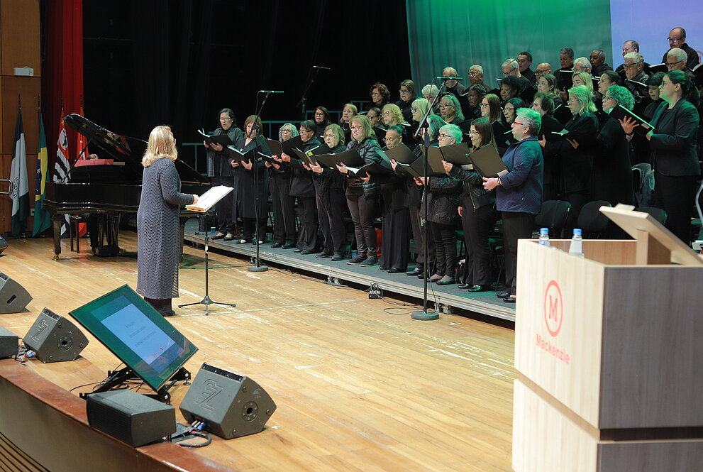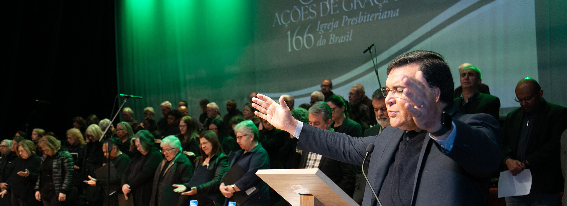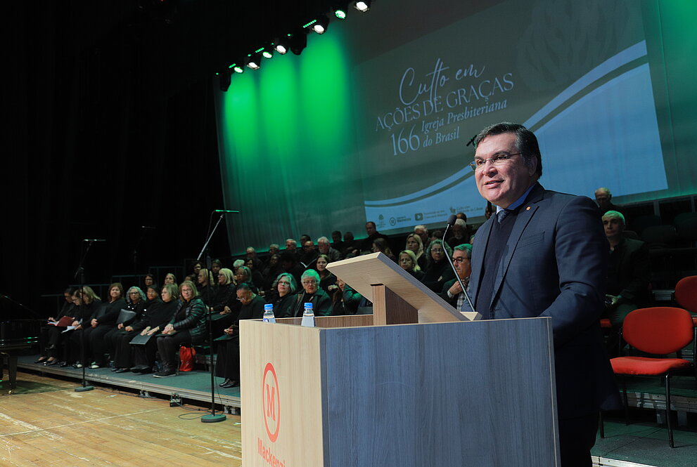 Na manhã de terça-feira, 12 de agosto, a Universidade Presbiteriana Mackenzie (UPM) sediou o Culto em Ação de Graças em comemoração aos 166 anos da Igreja Presbiteriana do Brasil (IPB). A celebração contou com a pregação do chanceler do Mackenzie, reverendo Robinson Grangeiro, e reuniu membros da Diretoria Executiva (Direx) do Instituto Presbiteriano Mackenzie (IPM), o reitor da Universidade Presbiteriana Mackenzie (UPM), professor Marco Tullio de Castro Vasconcelos, integrantes do Conselho Deliberativo do IPM e representantes da IPB de diversos sínodos de várias cidades.
