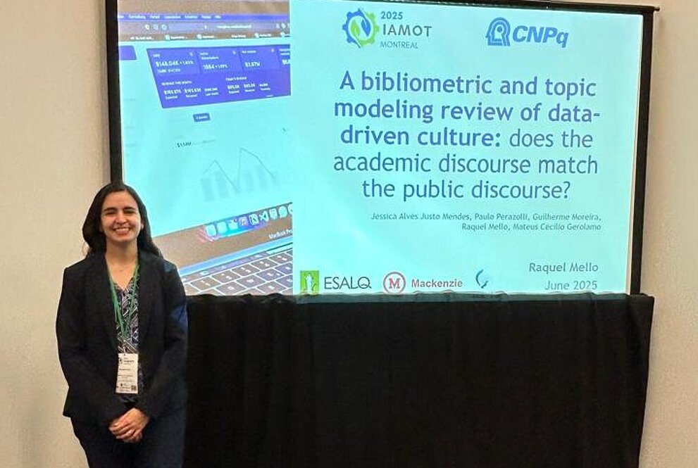 “O artigo apresentado no IAMOT 2025 teve como tema central a análise comparativa entre os discursos acadêmico e público sobre cultura organizacional orientada a dados. A pesquisa utilizou técnicas de modelagem de tópicos baseada em machine learning não supervisionado para mapear como o tema é tratado na literatura científica e em notícias, identificando convergências e divergências entre esses dois campos”, explicou a professora.