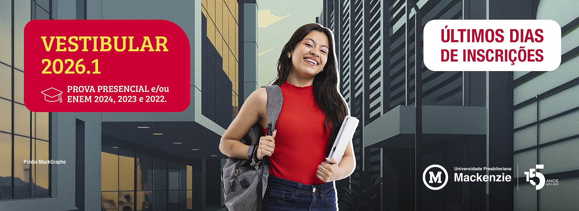 As inscrições para o processo seletivo 2026.1 da Universidade Presbiteriana Mackenzie (UPM), campus Higienópolis, estão na reta final! Os candidatos têm até o dia 13 de novembro para garantir a sua participação na prova.