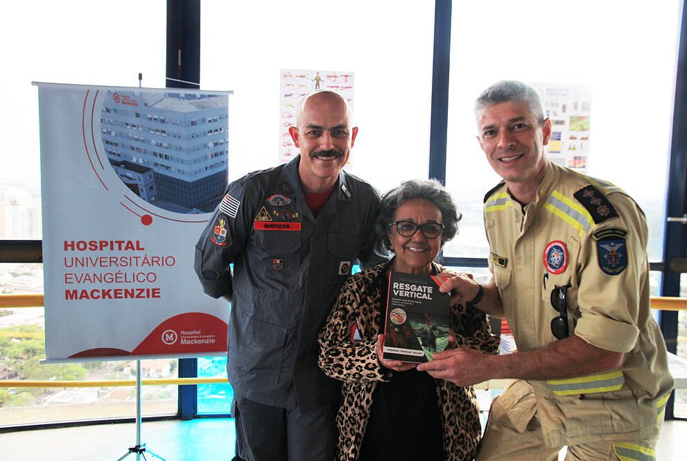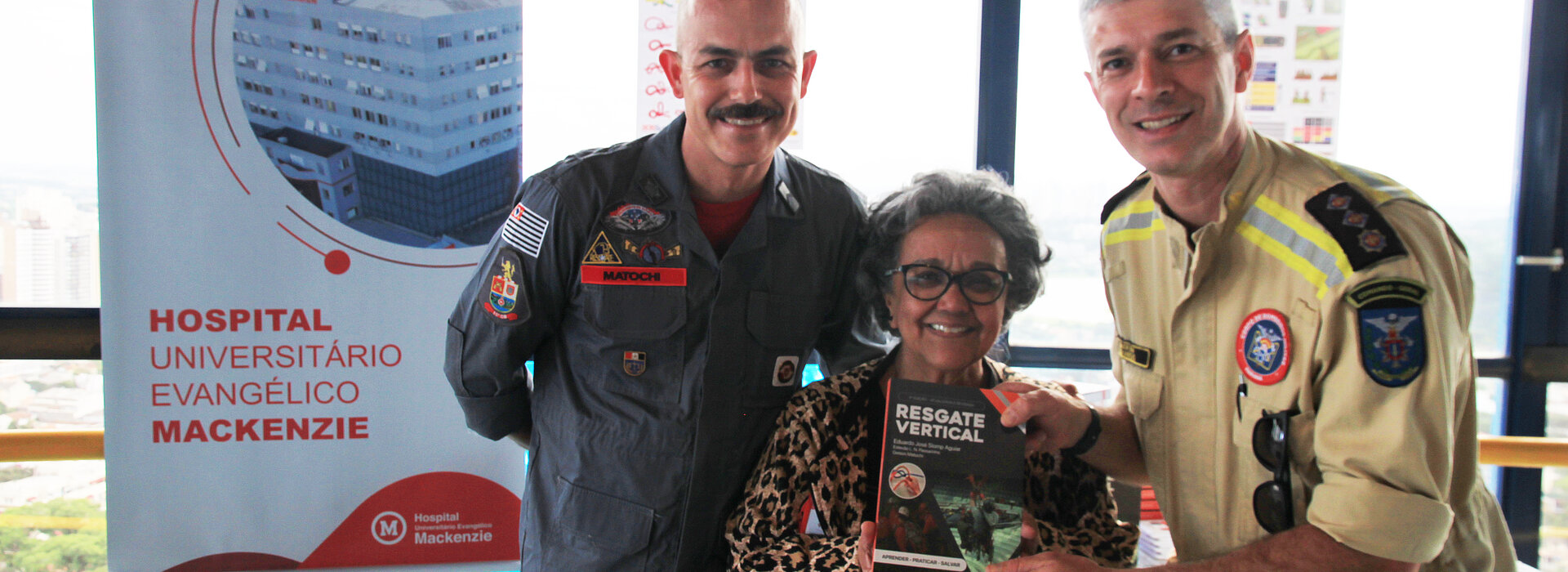 Foi lançada no último dia 7 de novembro, no alto da Torre Panorâmica de Curitiba, ponto turístico na capital paranaense, a terceira edição do livro “Resgate Vertical”, do Major do Corpo de Bombeiros do Paraná, Eduardo Aguiar. Parte da renda arrecadada com a venda dos livros foi destinada ao Hospital Universitário Evangélico Mackenzie (HUEM), que foi representado na ocasião pela Coordenadora de Voluntariado, Ivanyra do Rocio dos Santos Haviaras.